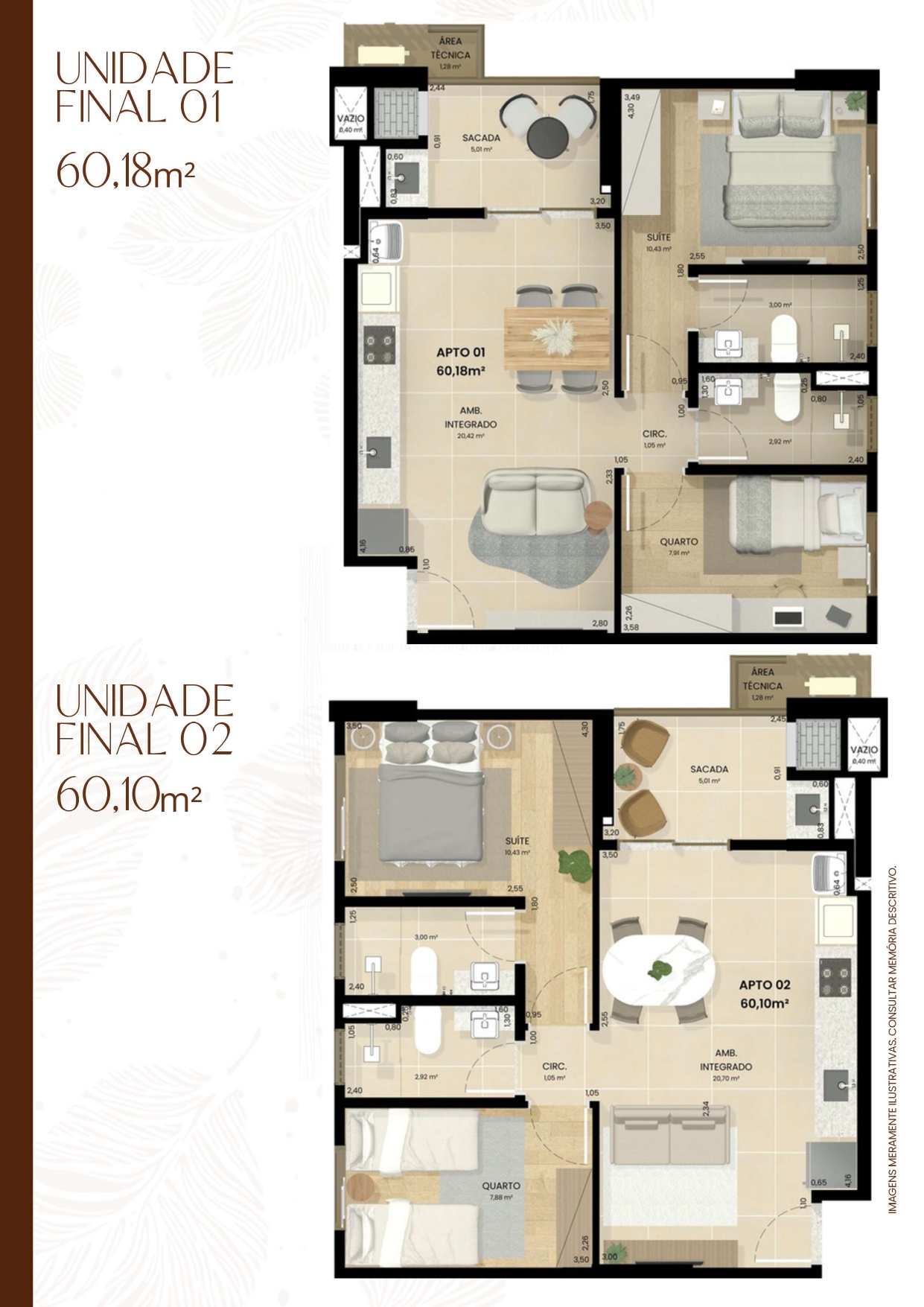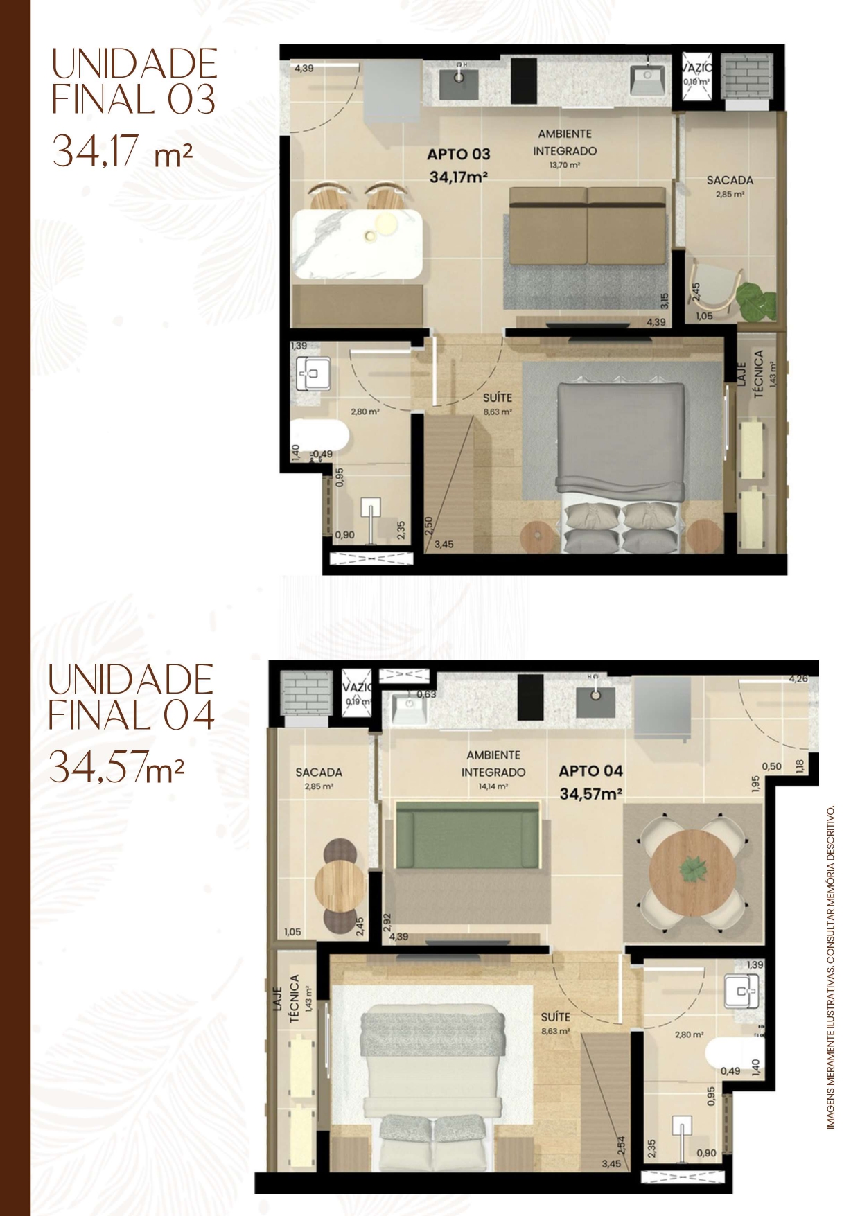 🏬Apartamentos na planta de 34 m² a 60 m² 📐